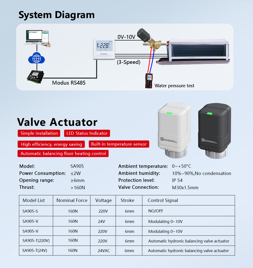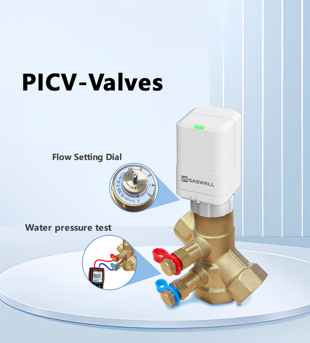 La vanne de régulation indépendante de la pression (PICV) SASWELL est une vanne haute performance intégrant un contrôle précis du débit et un équilibrage hydraulique automatique, spécialement conçue pour les systèmes CVC modernes. Elle maintient un débit constant quelles que soient les fluctuations de pression du système, garantissant une régulation précise de la température et un fonctionnement écoénergétique. Grâce à un débit maximal préréglé, elle élimine le besoin d'équilibrage hydraulique supplémentaire, améliorant ainsi considérablement les performances et le confort du système. La PICV est adaptée aux ventilo-convecteurs, aux centrales de traitement d'air, aux planchers chauffants et aux systèmes de climatisation/chauffage urbains, et offre de multiples options de régulation pour une intégration flexible du système.
