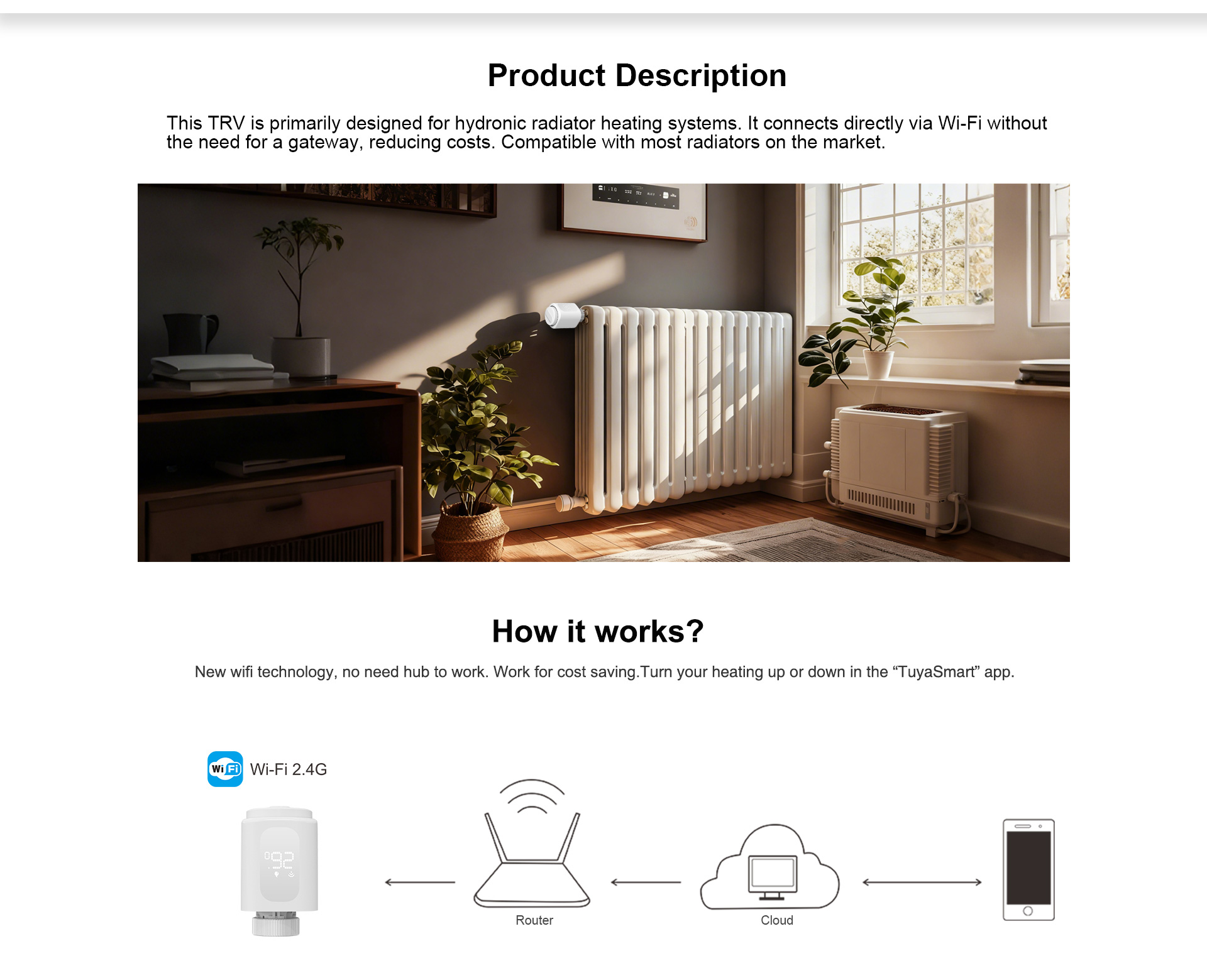 Thermostat de radiateur Tuya Smart TRV, aucune passerelle requise, contrôle précis de la température du radiateur via WIFI 2,4 GHz SEA889Suivant :