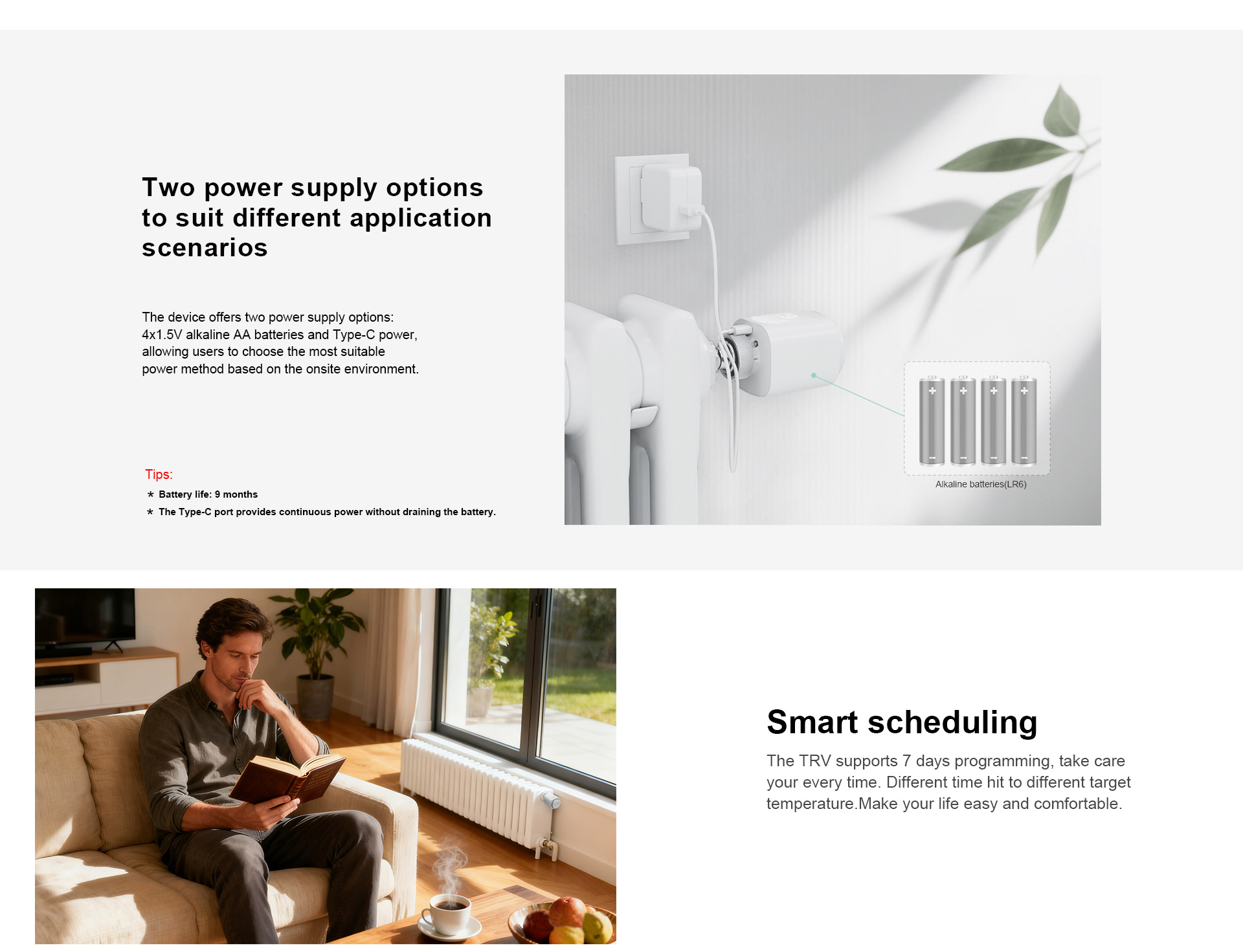 30x1.5mmContrôleur de radiateur intelligent Wi-Fi (Type C / Alimentation par batterie), vanne de chauffage intelligente sans passerelle