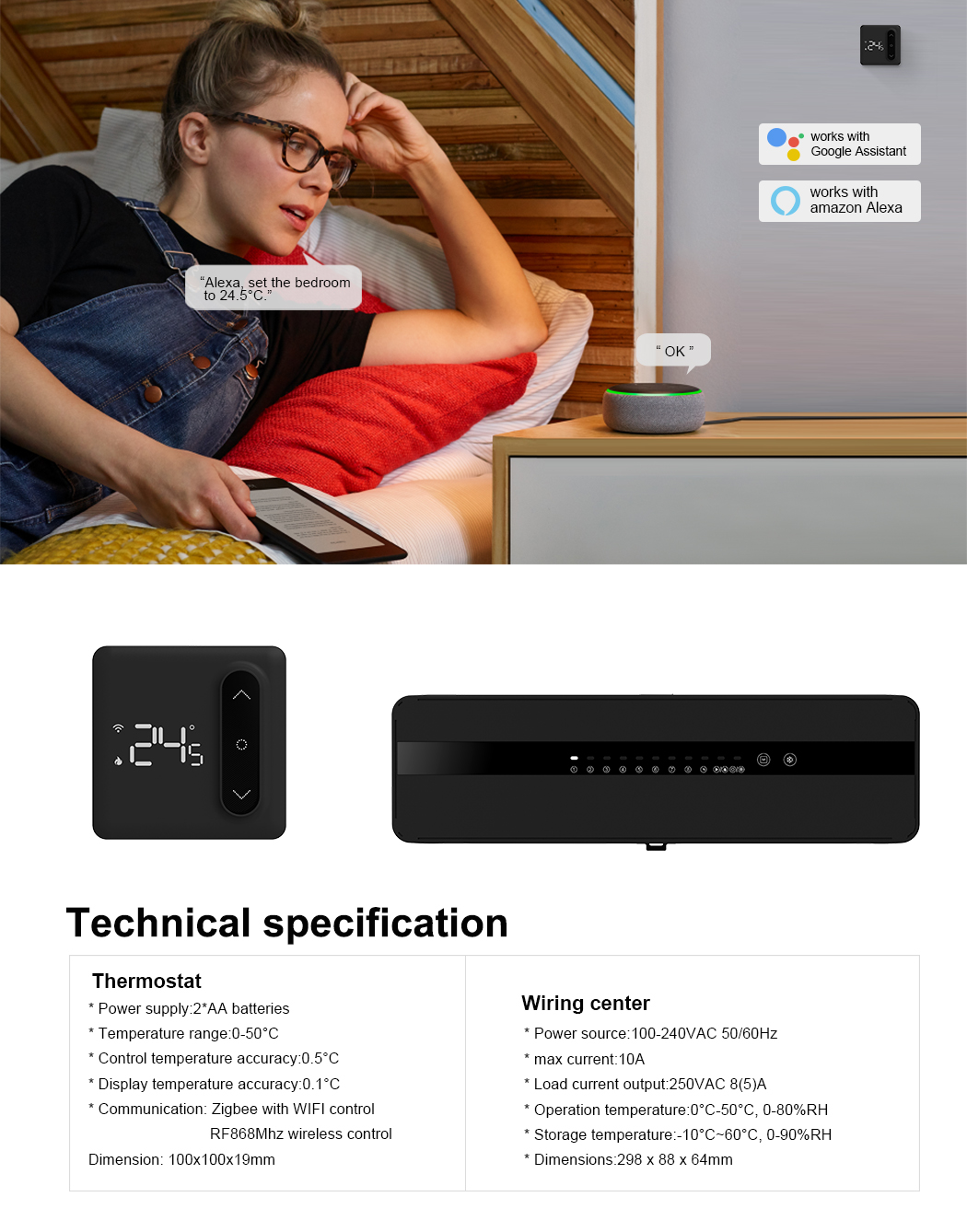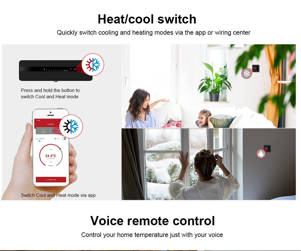 Sa conception sans fil simplifie l'installation, ce qui le rend adapté aux projets de construction comme de rénovation. Les utilisateurs peuvent régler la température intérieure à distance via une application mobile, améliorant ainsi le confort et l'expérience de vie intelligente. Un contrôle précis de la température permet d'optimiser la consommation d'énergie et de réduire les coûts d'exploitation.