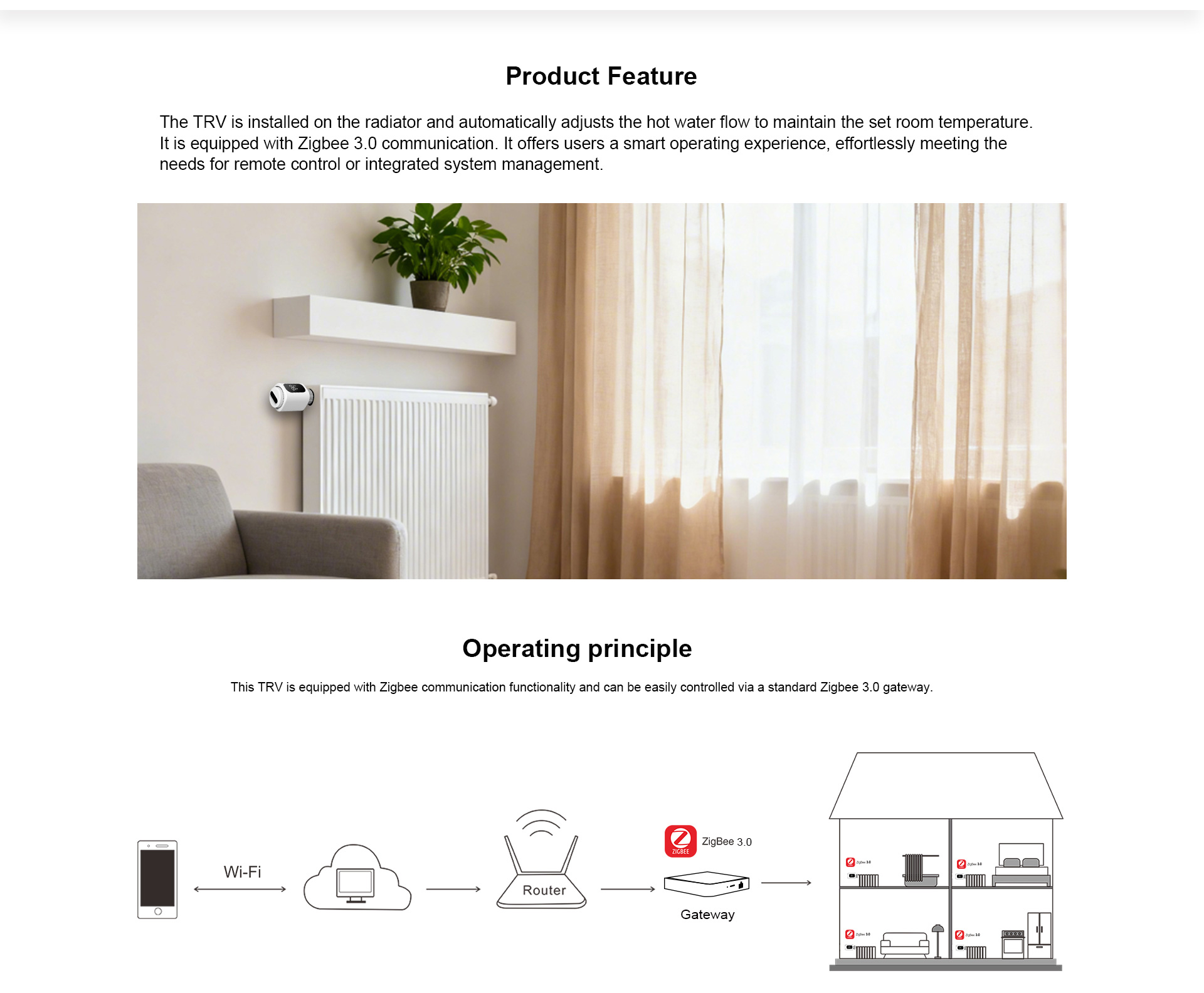 Le contrôleur de radiateur intelligent Zigbee 3.0 est un dispositif de contrôle de chauffage intelligent basé sur le protocole Zigbee 3.0. Il se connecte facilement aux passerelles domotiques et aux applications mobiles, permettant ainsi un réglage à distance de la température et une gestion écoénergétique du chauffage.