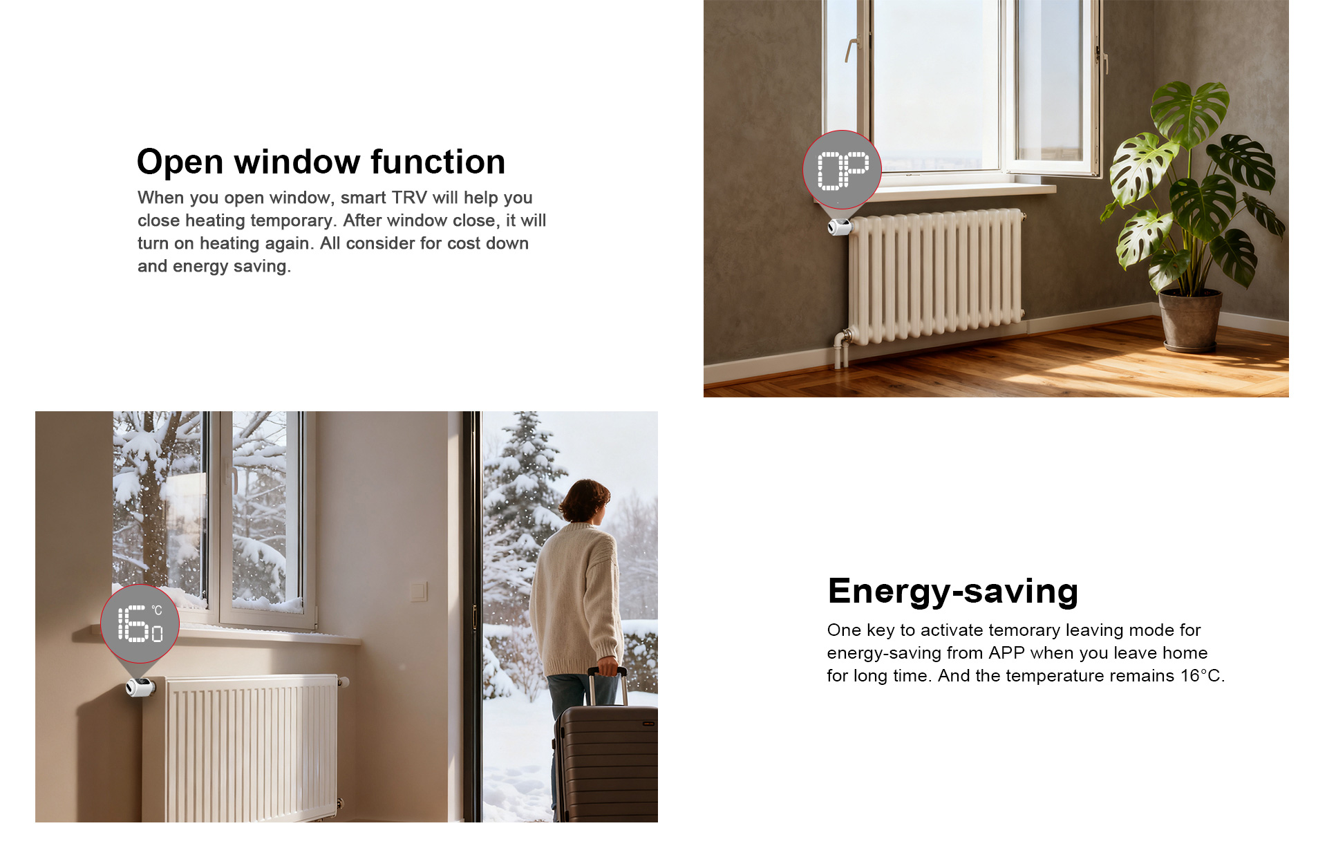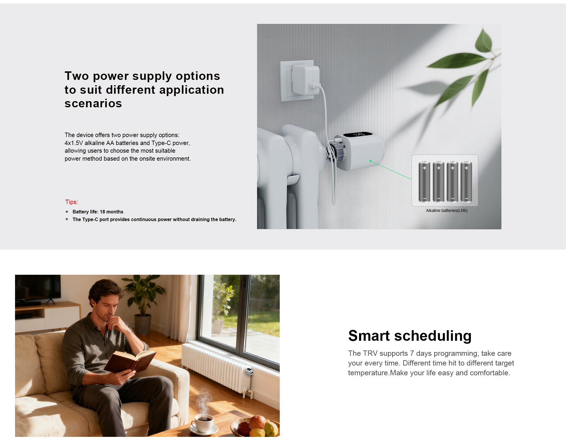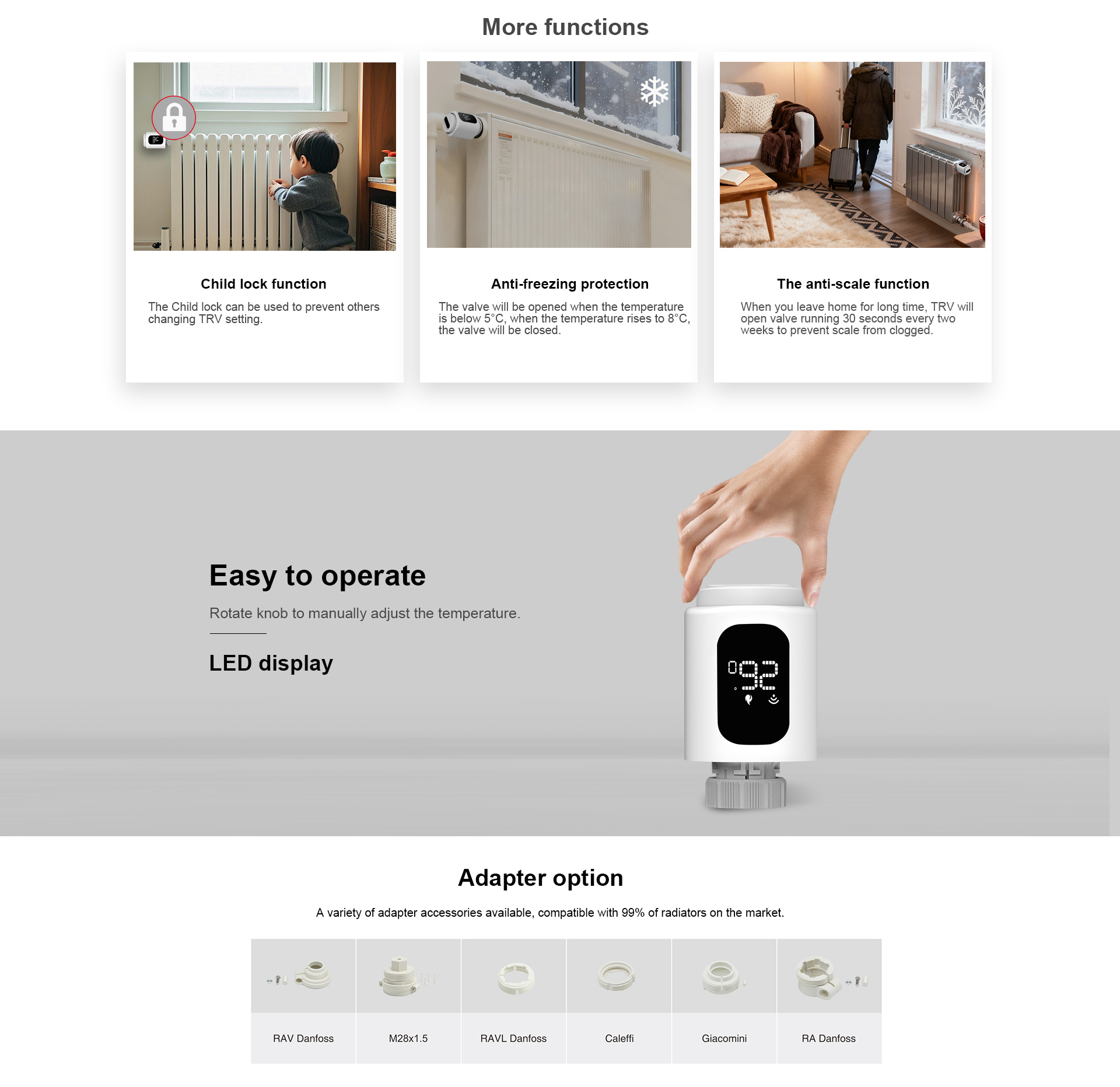 Alimenté par quatre piles AA d'une durée de vie de 18 mois, il est compatible avec 99% des vannes de radiateur.